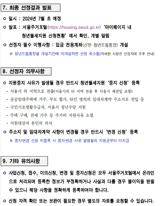서울시 청년세지원 기수혜자 및 국토교통부 청년세 한시 특별지원 선정자,