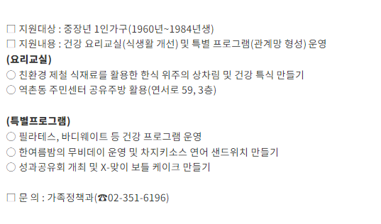 - 은평구에 거주하는 1960년생부터 1984년생 중장년 1인 가구라면 누구든지 참여 가능합니다.