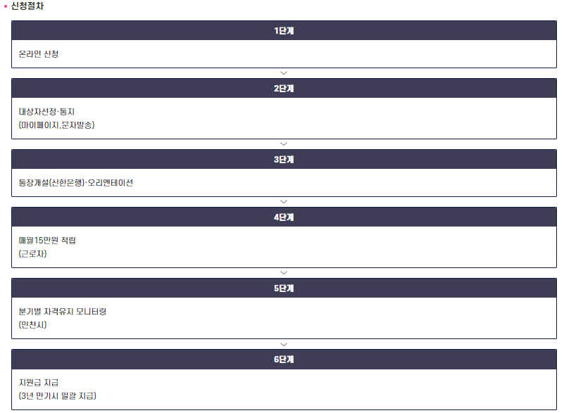 - 인천 거주 18세~39세 이하 재직 청년(생애1회) * 1984. 1. 2 ~ 2006. 1. 1. 출생자