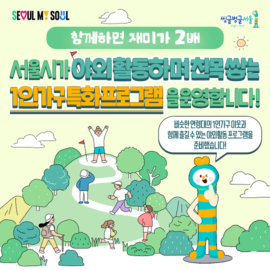 서울시가 1인가구를 위하여 야외활동을 하며 친목을 쌓는 1인가구 특화 프로그램을 지원한다고 합니다.